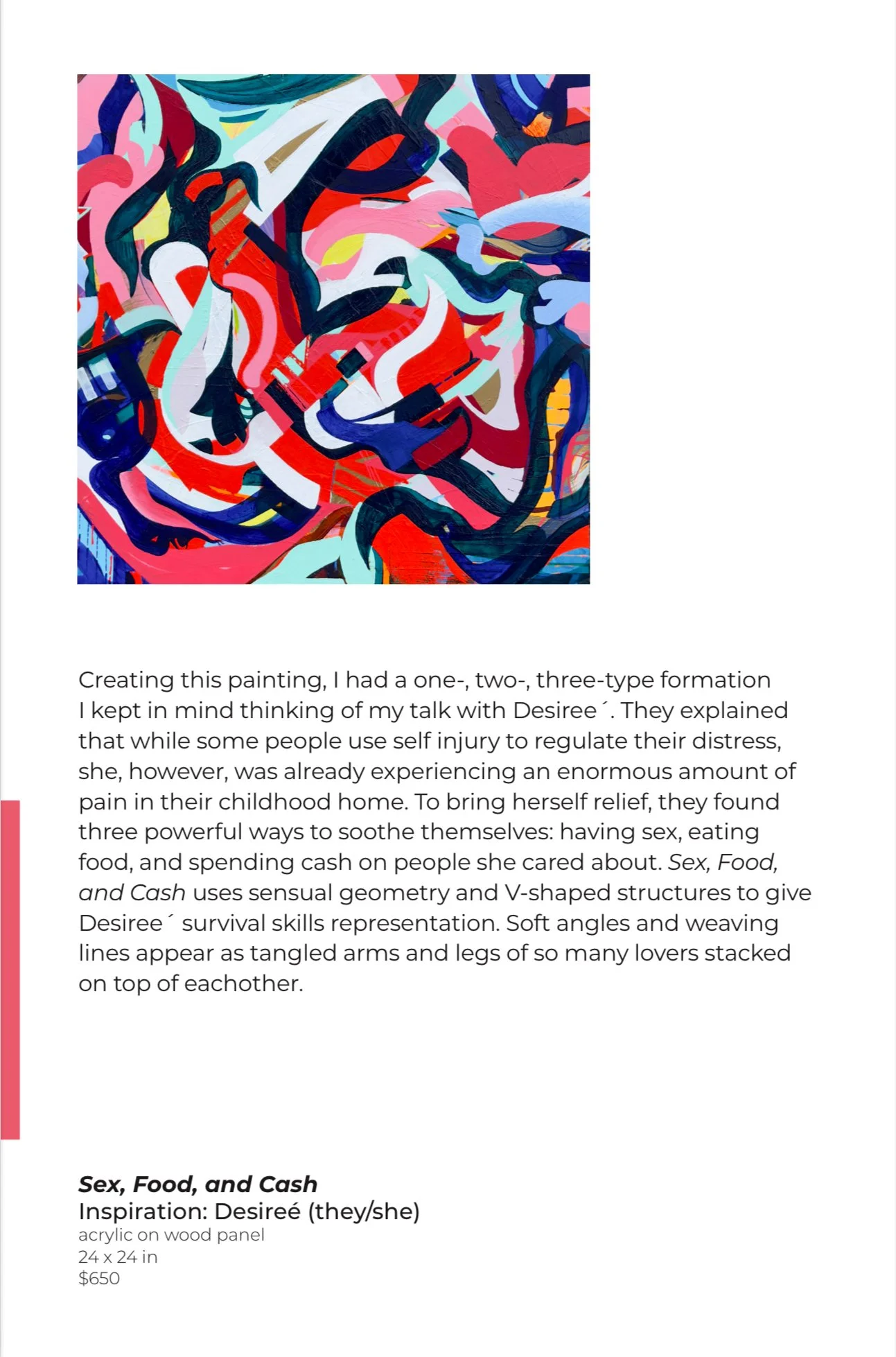 Each painting is a portal into a different narrative, allowing the viewer to sense, rather than simply observe, the emotional and structural realities of psychiatric hospitalization. My approach balances abstraction and intentional symbolism, honoring my collaborators’ voices while maintaining my personal artistic vocabulary.